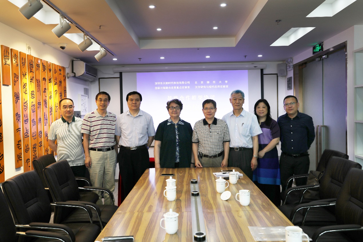 2018年6月28日,36365官网汉字研究与现代应用实验室与深圳天朗时代科技有限公司国家出版融合发展重点实验室的合作签约仪式,在汉字实验室举行。 36365官网资深教授王宁先生、汉字实验室主任王立军教授代表汉字实验室,与李政放董事长签订了《战略合作框架协议》。教育部基础教育司课程处原处长沈白榆先生见证了签字仪式。 双方本着平等互利、优势互补的原则,天朗公司充分发挥其在关联技术、融合出版、产品运营、客户服务等方面的优势,汉字实验室充分发挥在汉语言文字、学术研究、教育教学、规划设计、资源开发等方面的优势,共同致力于汉字资源建设、汉字教学产品开发、文化推广等方面的深度合作,为结成长期全面的战略伙伴关系而共同努力。 签字仪式后,天朗公司一行参观了汉字实验室,并与王宁先生等进行了深入交流。 出席本次活动的还有天朗公司石磊副总经理、徐彦明副总经理和李博文主任,北师大汉字实验室副主任宋继华教授和实验室主管温英明老师等。
