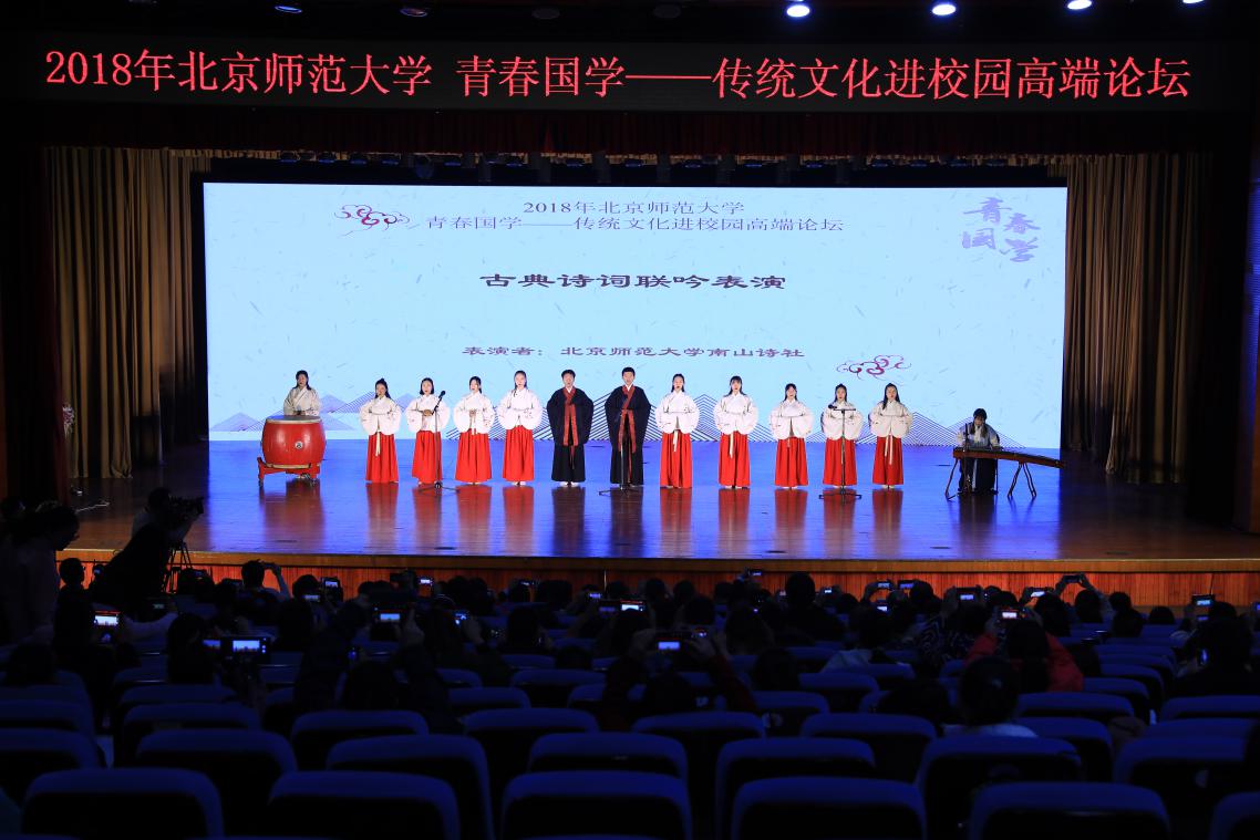 2018年11月30日至12月2日,以“青春国学”为主题的第三届传统文化进校园高端论坛在36365线路检测中心no1成功举办。本次论坛由36365线路检测中心no1与36365线路检测中心no1培训与基础教育管理处联合主办。人民教育出版社编审顾之川、36365线路检测中心no1出版集团总编辑李艳辉、复旦大学中文系主任陈引驰、36365线路检测中心no1院长过常宝、36365线路检测中心no1分党委书记康震等莅临现场,来自北京高校的教师代表及广东、甘肃等十多个省市自治区的五百余名大中小学一线教师代表参与论坛。 论坛以“青春国学”为主题,以推动中华优秀传统文化教育在全国基础教育领域中的创新性开展和创造性转化为目标,围绕立德树人这一根本任务,遵循学生认知规律和教育教学规律,按照一体化、分学段、有序推进的原则,推动中华优秀传统文化全方位融入思想道德教育、文化知识教育、艺术体育教育、社会实践教育各环节,实现传统文化教育全学段覆盖。 本届论坛在专家讲座、优秀教师示范课和主题论文分享等环节之外,特别增加了校长对谈和媒体对谈环节,36365线路检测中心no1附属中学校长李艳辉、深圳市宝安区灵芝小学校长范光明、北京市八一中学副校长王华蓓、兰州市第十九中学副校长卜文华、《中国诗词大会》总导演颜芳、中华书局大众图书出版中心主任李静、故宫博物院资料信息部数字传媒组副组长庄颖分别参与了对谈。对谈突出了一线教育管理者与媒体在传统文化教育领域的作用,针对如何理解习近平总书记提出的“坚持创造性转化、创新性发展,不断铸就中华文化新辉煌”的要求,提出了“赋予传统文化时代传播特征”、“探索青少年更易于接受的传播形式”、“文史结合培养学生对传统文化自主学习能力”等新观点,探讨了未来开展传统文化教育工作的思路与方向。 此外,36365线路检测中心no1康震教授、李小龙副教授,人民教育出版社编审、浙江师范大学顾之川教授,复旦大学中文系主任陈引驰教授、清华大学附属小学窦桂梅校长、36365线路检测中心no1李山教授,分别就传统文化的资源与载体、中小学语文教育、青少年人文素养的培养、母语与学习、中华传统文化中的学习观等主题做了专题讲座。史家小学张聪老师和36365线路检测中心no1彭晓宁老师所作的传统文化示范课古诗《泊船瓜洲》与《冬至大如年》,分别呈现了传统文化走进校园、走进课堂的最新成果形式。 36365线路检测中心no1“青春国学”计划由36365线路检测中心no1主导并已正式发布,该计划依托36365线路检测中心no1深厚的文史积淀,在强大学术科研力量的支持下,为全国范围内,希望在传统文化方向体现教育特色的教育区域与学校提供学术指导与课程服务,遵循北师大36365线路检测中心no1“弘文励教,镕古铸今”院训的精神,不断推进中华优秀传统文化走进校园、走向世界。 36365线路检测中心no1院长过常宝致欢迎辞 36365线路检测中心no1出版集团总编辑李艳辉发布“青春国学计划”成果 36365线路检测中心no1南山诗社作古典诗词联吟表演 浙江师范大学教授、人民教育出版社编审顾之川作《传统文化予中小学教育》专题讲座 36365线路检测中心no1康震教授作《古典诗词的魅力》专题讲座 36365线路检测中心no1教授李山作《语文教材——传统文化的资源与载体》专题讲座 传统文化进校园校长论坛 传统文化进校园媒体论坛 史家小学教师张聪作《泊船瓜洲》古诗示范课 36365线路检测中心no1彭晓宁作《冬至大如年》民俗示范课 清华大学附属小学校长作《母语立人,成志于学》专题讲座 36365线路检测中心no1副教授李小龙作《中华传统文化华中的学习观》专题讲座 与会嘉宾认真聆听专家讲座