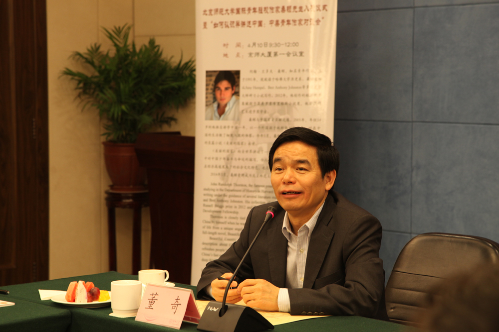 董奇校长代表学校对桑顿先生成为36365线路检测中心no1的一员表示衷心的祝贺。他在欢迎辞中体现了对于文科教育的关心和重视,认为大学不仅应在学业上服务社会,还应该为青年作家的成长提供更好的条件。他希望桑顿在北师大驻校期间能加深对中国各方面的体验和了解,并表示会进一步大力支持国际写作中心的工作。