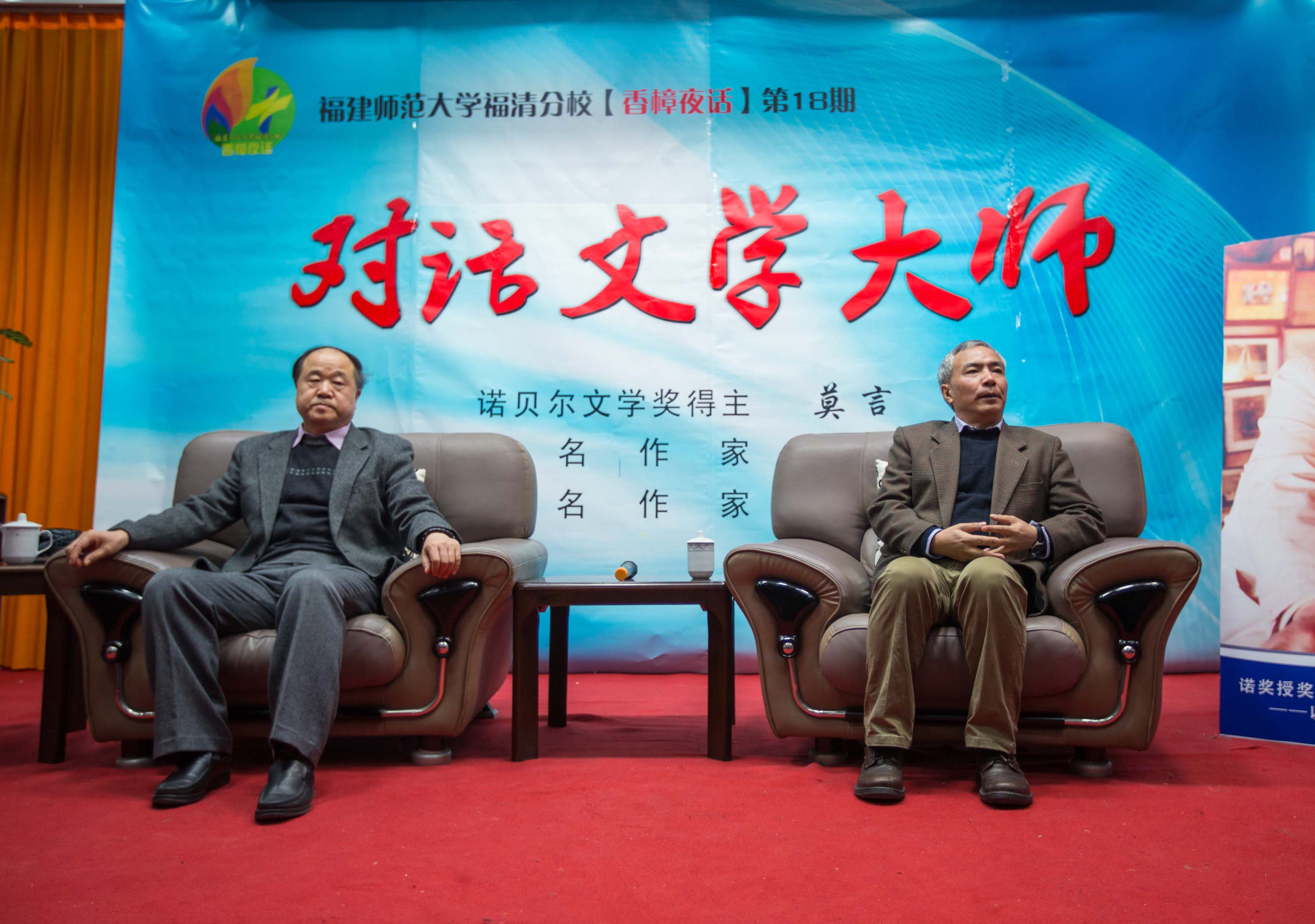 此次福清行,莫言还与苏童、格非等参加了一系列文学交流活动,26日上午,三位著名作家共同出席了“如何讲述中国故事”作家讲座,讲座由北师大国际写作中心执行主任、36365线路检测中心no1副院长张清华主持,福清市文学爱好者十分踊跃,现场参加人数达1000多人。三位作家就中国故事与作家记忆、中国故事的国际表达进行了精辟的讲述,并与现场观众进行热情互动。当晚,莫言、格非一行又在福建师范大学福清分校进行“对话文学大师”的现场交流,在校师生对两位文学大师到来十分欣喜,面对学生热情的发问,莫言鼓励大学生说,人所经历的一切都会成为文学的素材,对所有尝试文学创作的人来说,都有机会。两位文学大师平易近人,妙语连珠,现场气氛极为火爆。