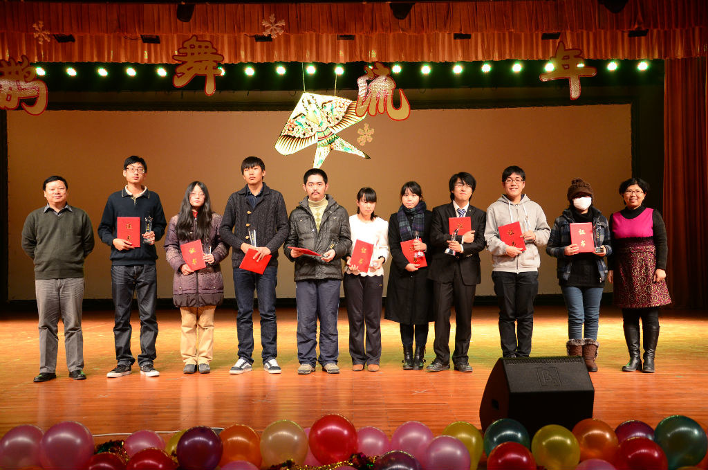 颁奖典礼开始前,主持人依次为观众介绍九位获奖者的个人事迹。伴着大屏幕上的个人事迹展播,主持人宣读颁奖词。“猝不及防,她遭遇病魔;花样年华,直面一纸诊书。后来,三次骨穿,她咬牙忍住……阳光温暖,消融冬雪,她正绽放着夏日的烂漫!”11级师范生李夏夏顽强抗争病魔的事迹感动了全场观众,迎来了热烈的掌声,文星自强奖她当之无愧。北师大十佳大学生、北京市三好学生,文院的“好班长”、“好主席”耿喆,是文院名副其实的文星学霸;创建了古典社会模拟(CIVITAS)计划的文院12级励耘班陈约翰,更是文院创业的先行者;36365线路检测中心no12012级现当代文学博士霍艳,从《生如夏花》《地下铁》开始,十年笔耕不辍,用文学与创作书写人生的篇章;还有澄文网签约写手徐杨,以古风小说见长的她才情与学识兼备,是文院人身边的文星作家;12级传播班李琳,活跃在新青年学堂、安全帽、白鸽青协等多个志愿服务领域,获得园博“卓越奖”、“志愿之星”等多项奖励,用志愿奉献的热情书写文星志愿达人的风采;12级教育硕士珠曲,本科毕业后毅然回到西藏阿里牧区从事小学教育工作,中央多家媒体都曾报道过他的事迹,雪域骄子珠曲,我们文院的骄傲;北师吉他社社长杨效,有自己的乐队“饭来张口”,2011年更是靠蹬三轮来到了青海湖,他不是学霸也不是神话,却以潇洒的身影个性化地定义了“大学”二字;还有一群特别的获奖者,他们就是36365线路检测中心no1一二九合唱的全体参与者,十二载春秋,十二连冠的神话,他们用汗水与泪水成为一二九比赛中那颗最亮的星!