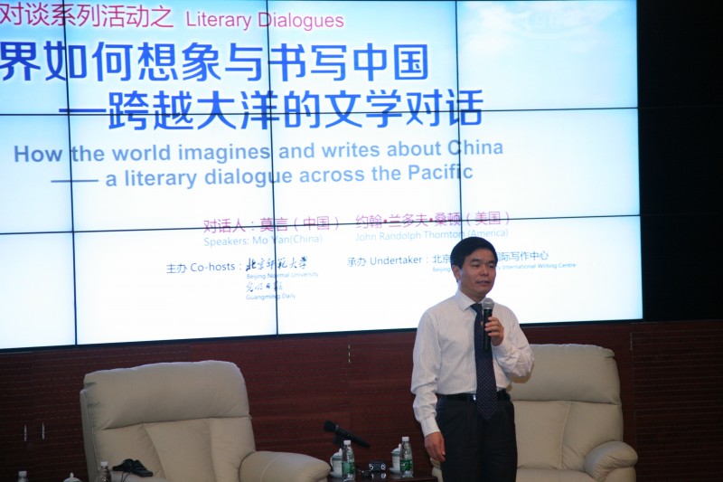 董奇校长在致辞中表示,莫言和约翰•兰多夫•桑顿先生的对话,对于加强文学创作的交流有重要帮助,随着中国的发展,不仅会有越来越多的中国作者,也会有更多来自其他国家的作家,用他们的笔描绘一个有着五千年文明历史的东方大国的过去、现在和未来,描绘中国的梦、世界的梦以及和平的梦,描绘中国人民和世界人民共同奋斗、创造美好家园的共同远景。