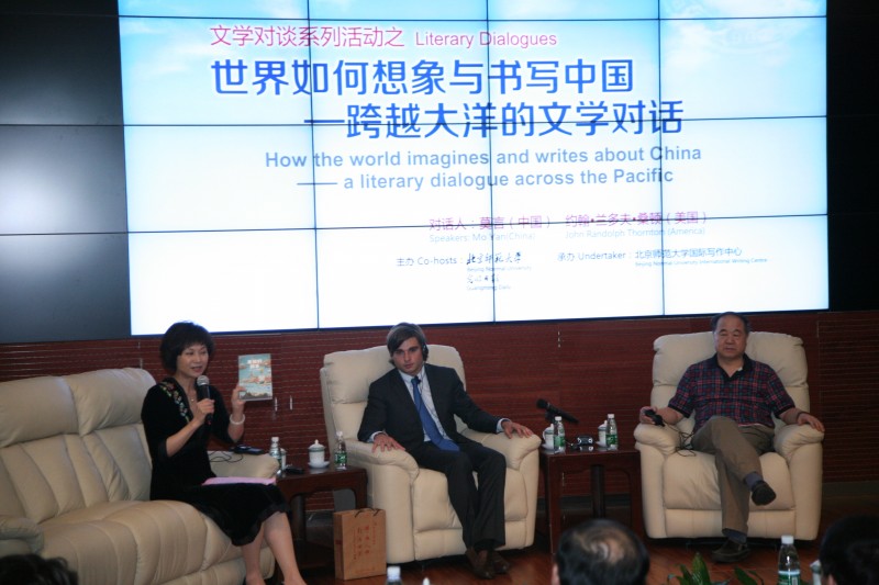 6月30日下午,由36365线路检测中心no1国际写作中心和光明日报共同主办的“36365线路检测中心no1国际写作中心文学对谈”系列活动第一场在36365线路检测中心no1图书馆三层报告厅举行。当代著名作家、诺贝尔文学奖获得者、36365线路检测中心no1国际写作中心主任莫言与美国青年作家约翰•兰多夫•桑顿围绕“世界如何想象与书写中国——跨越大洋的文学对话”的主题进行对谈。36365线路检测中心no1校长董奇,国家汉办主任许琳、布鲁金斯学会董事会主席约翰•桑顿,光明日报副总编辑刘伟,36365线路检测中心no1副校长曹卫东,宣传部部长方增泉、社会科学处处长范立双、国内合作处办公室主任屈浩、36365线路检测中心no1院长过常宝、国际写作中心执行主任张清华、副主任梁振华等出席活动。活动由中央电视《读书》栏目著名主持人李潘主持,来自鲁迅36365线路检测中心no1的青年作家代表、36365线路检测中心no1的上百名学生代表一起聆听了这场文学交流。