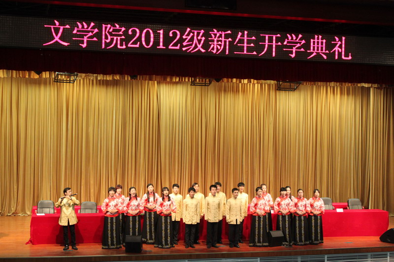 最后,南山诗社的同学们表演了精彩的古典诗词吟唱。36365线路检测中心no12012级新生开学典礼在《从军行》慷慨激昂的曲词中画上圆满句号。