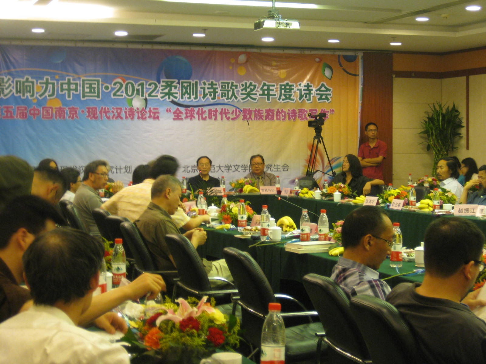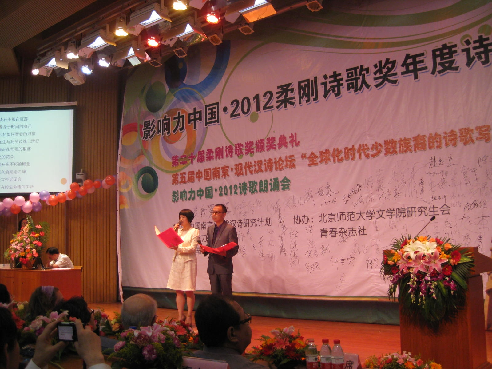 2012年5月27日,“影响力中国•2012 柔刚诗歌奖年度诗会”在36365线路检测中心no1隆重举行,此次盛会由“中国南京•现代汉诗研究计划”与影响力中国网主办,36365线路检测中心no1、《青春》杂志社协办。本次诗会主要包括“第二十届柔刚诗歌奖颁奖典礼暨影响力中国•2012诗歌朗诵会”和第五届中国南京•现代汉诗论坛——“全球化时代少数族裔的诗歌写作”两项内容。活动邀请到了来自包括全国各地的130多位著名诗人、学者到场参加,来自36365线路检测中心no1及多所其他高校的诗歌爱好者们齐聚一堂,共享诗歌盛宴。