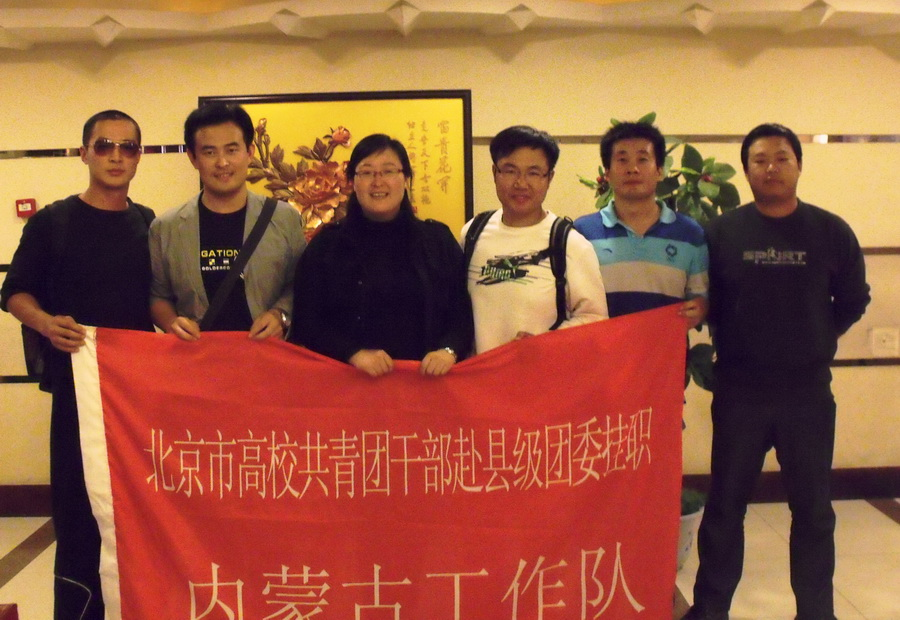 从2010年底知道了有这么一群人要一起去内蒙挂职,到过年后第一次见面AA吃火锅,我们37位挂职团干部的形象从单一的纸质材料、网络头像,成了活生生的每一个人。共同的使命,让我们在见第一次面的时候就产生了一种亲人般的感觉。挂职的日子里,飞信群和qq群是我们联络和交流的桥梁。网络十七届六中全会精神学习讨论会、网络团组织创新方式头脑风暴、网上生日会,都使我们拉得更紧密。作为队长和临时党支部书记的我,一刻也没有忘记用党组织来聚拢大家,于是内蒙挂职团“创先争优活动实施方案”的指导下,五个党小组营运而生,党小组长通过组织团建分享活动、参观学习博物馆、观看爱国爱党影片、开展主题座谈会等活动,让党员挂友们紧密地围绕在党组织周围。七一前夕,37名团干用挂职驻地的土壤和沙子堆积而成的两面内蒙沙盘地图——“万里草原挂职情 一片红心谢党恩”,一面在团队组织的七一座谈会上送给了内蒙自治区团区委,另一面则翻山越岭回到了北京献给了北京团市委。红色的祝福卡片,传递着37位的决心、认定两个团委都是家的心情。45%的内蒙挂职团干工作在国家级贫困县,这共同的奋斗历程也把我们拉得更近、更亲,尤其在经历了七一座谈、中秋东西互动、国庆边防慰问、编辑十万字草原风等诸多过程之后,挂友们的感情更深了。这一种感情,与见面多少次无关。
