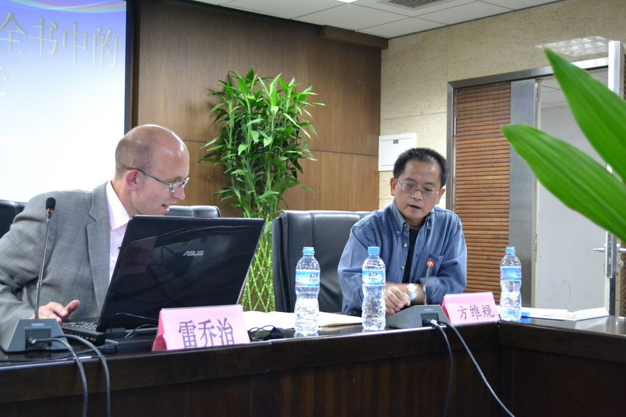 2011年9月22日下午,来自奥地利维也纳大学历史系的雷乔治(Georg Lehner)教授应邀在北师大36365线路检测中心no1励耘报告厅作了一场关于“欧洲百科全书中的中国文学”的专题讲座。本次讲座由36365线路检测中心no1文艺学研究中心的方维规教授主持,并作补充和评点。