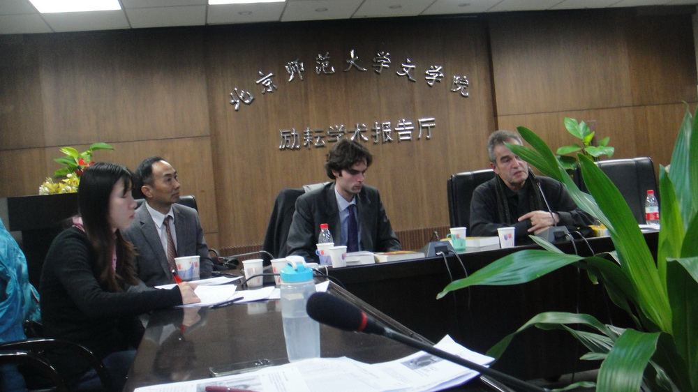 此次讲座以法国驻中国大使馆的易杰(Nicolas Idier)先生与盖冈先生的对话的形式进行。易杰先生针对盖冈先生的经历和作品等提出很多不乏尖锐的问题,盖冈先生则给出了精彩的回答。在谈到盖冈先生两次创立出版社的历程时,盖冈先生为大家梳理了那个年代的法国历史状况和文坛动向;谈到新作《丰特努瓦不复归》时盖冈先生则强调了他的创作原则:他乐于去探究丰特努瓦这样一个从信仰共产主义最终走向法西斯主义的作家的传奇一生,乐于为读者们揭示这位先驱作家的隐秘历史。在谈到比较文学时,盖冈先生重点强调了比较文学之于文化交流的重要意义,并勉励在座的同学们要深入比较文学的学习研究之中从而发现文化之美。