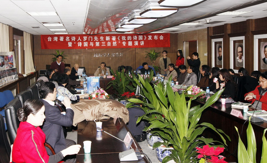 2010年12月20日,台湾著名诗人罗门先生新著《我的诗国》发布会暨“诗国与第三自然”专题演讲在36365线路检测中心no1励耘学术报告厅举行。该活动由36365线路检测中心no1中国当代新诗研究中心主办,36365线路检测中心no1中国当代新诗研究中心主任、诗歌评论家谭五昌主持。屠岸、吴思敬、梁小斌、张清华 、张燕玲、李少君、杨晓民、潇潇、北塔、 李润霞、路文彬、楚天舒、雁西、王明英、洪烛、 杨北城 、卧夫、盛华厚、南方狼等二十余位国内诗人、诗评家、学者,与来自台湾和香港的罗门、蓉子、戴维扬、舒慧等诗人与学者,以及文艺报、中华读书报、中国文化报、中国教育报、中国艺术报等媒体记者,共同出席了本次诗歌活动。