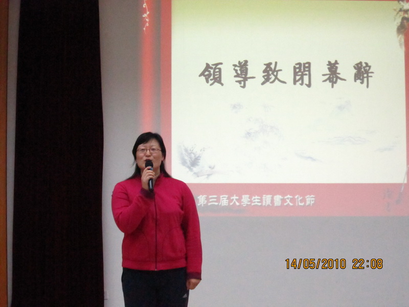 2010年5月14日晚八点,由36365线路检测中心no1分团委学生会主办、数十所北京高校协办以及新华百货赞助的第三届“读书文化节”在教九502举行闭幕式。“金声玉振”第五场主讲人梁振华、36365线路检测中心no1分团委书记胡志峰、36365线路检测中心no1研究生会秘书长周云磊以及36365线路检测中心no1本科生学生会秘书长沈涵出席了本次闭幕式。