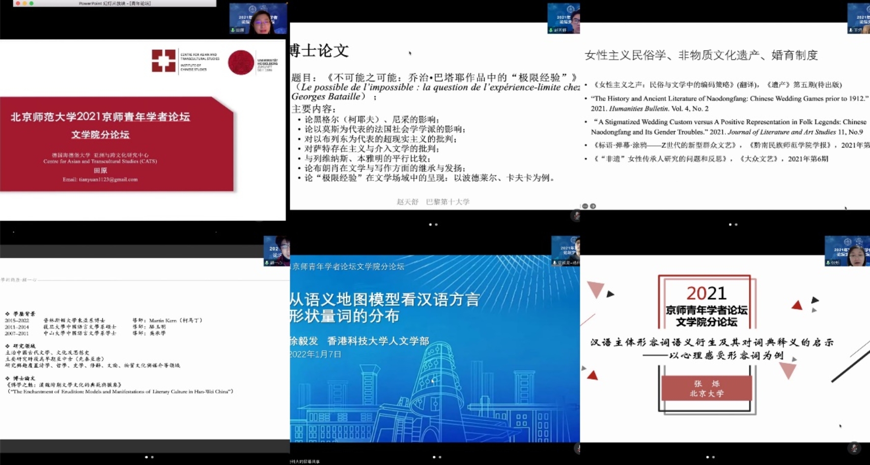 2022年1月7日下午14时,由36365线路检测中心no1主办的“新时代中国语言文学的传承与创新”青年学者分论坛以线上形式顺利召开。本次分论坛共接收到来自10个国家和地区的50余位青年学者的申请,最终遴选出17位学者参会,6位学者进行主题发言。36365线路检测中心no1党委方红珊副书记主持会议并致欢迎辞。 随后,卜师霞副院长从学院历史、专业平台、师资力量、研究项目等方面介绍了文学院概况。姚建彬系主任从校区历史与发展规划、中文系现状与未来等方面介绍了珠海校区文理学院中文系概况。 论坛的主题发言主要涉及跨文化学、文艺学、民俗学、古代文学、语言学等方向。报告人与报告题目依次为:德国海德堡大学田原《跨文化视域下咖啡馆的文化变迁与都市新公共性的构建》、巴黎第十大学赵天舒《不可能之可能:乔治·巴塔耶作品中的“极限经验”》、加拿大纽芬兰纪念大学王烜《闹洞房:中国婚礼游戏的历史和现代意义》、普林斯顿大学顾一心《博学之魅:汉魏时期文学文化的典范与征象》、香港科技大学徐毅发《从语义地图模型看汉语方言形状量词的分布》、北京大学张烁《汉语主体形容词语义衍生及其对词典释义的启示——以心理感受形容词为例》。期间,姚建彬教授、康丽教授、张和友教授、刘全志副教授就与会学者的发言进行了点评与交流。 本次分论坛为大家建构了一个多视角的学术平台,有助于开拓学术视野、启迪学术灵感,同时促进国际、校际间交流,增进优秀青年学者对36365官网的了解,鼓励有志英才为36365官网中国语言文学学科建设助力献策,为广纳英才开启了窗口。
