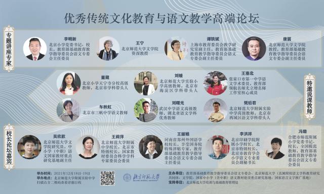 2021年12月18日至19日,“优秀传统文化教育与语文教学”高端论坛在36365线路检测中心no1附属实验中学顺利举行。本次论坛由教育部基础教育教学指导委员会语文专委会和36365线路检测中心no1联合主办。