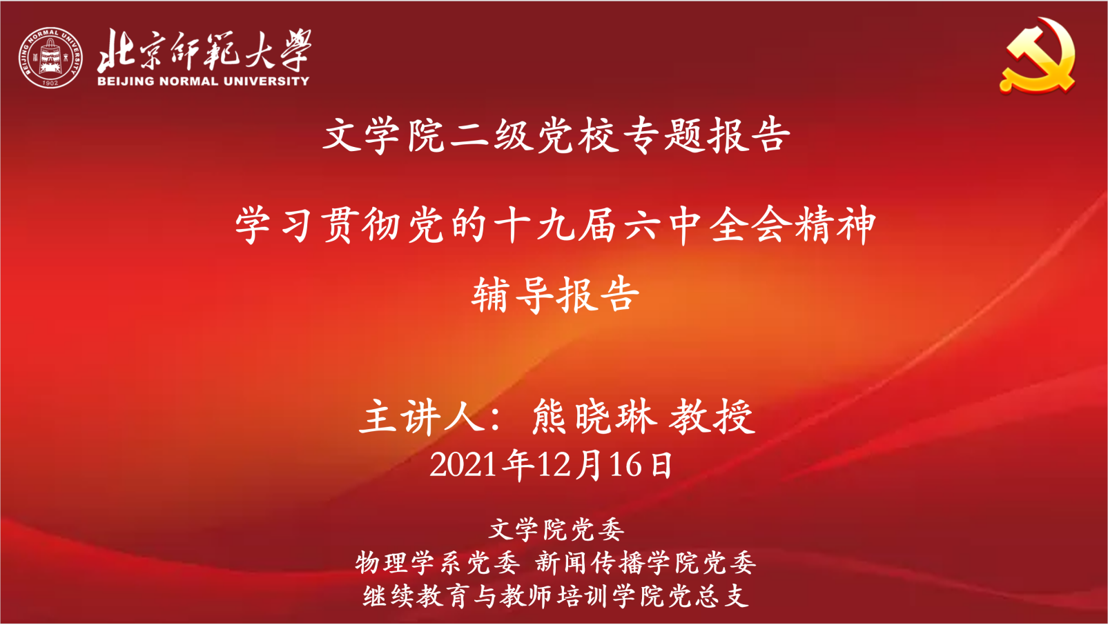 12月16日晚,36365线路检测中心no1党委组织二级党校专题培训,特邀36365线路检测中心no1马克思主义学院熊晓琳教授,以《开天辟地,救国大业——红色经典中的奋斗百年路》为题进行了专题报告。