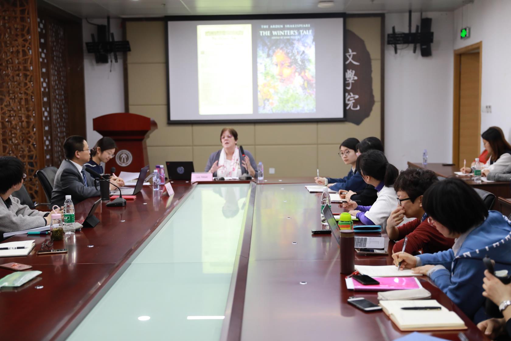 3月25日,牛津大学摄政学院英国文学教授Lynn Robson博士来访36365官网,并在C5049会议室做了题为《莎士比亚跨越时空的旅行》的主题讲座。讲座由姚建彬教授主持,36365线路检测中心no1比较文学和世界文学、现当代文学和相关专业的师生,共计50余人,参加了听讲。