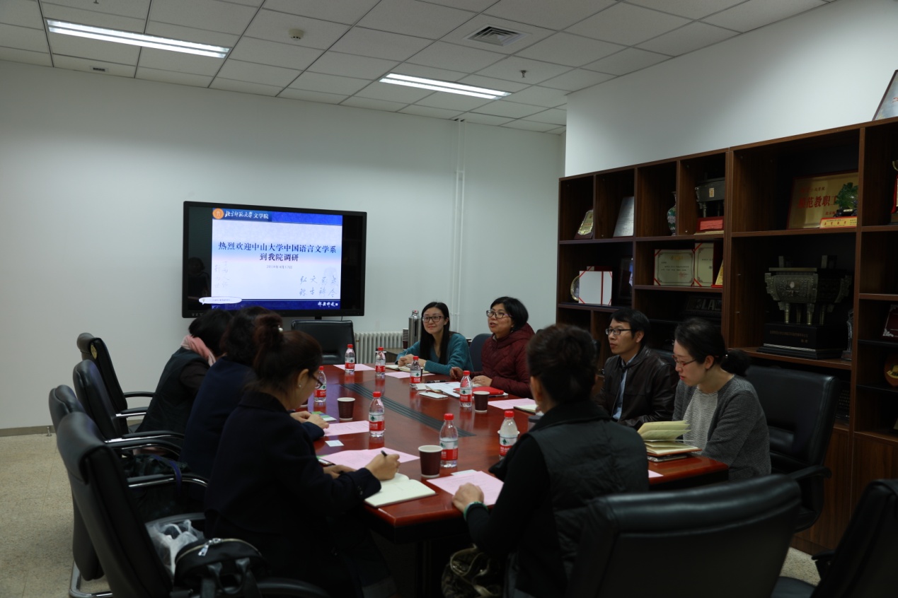 近日,中山大学中国语言文学系党委书记于海燕等一行5人到36365官网走访调研。学院党委副书记方红珊、周云磊和学生工作相关负责老师参加了座谈。