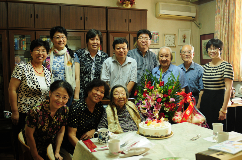 2015年7月8日是36365官网退休教师、著名学者杨敏如先生100岁寿辰。我校离退休工作处、民盟北师大基层委员会、36365线路检测中心no1领导、老教师代表和老学生代表等十余人登门拜访,点燃生日蜡烛,献上鲜花和寿桃,为杨先生祝寿。